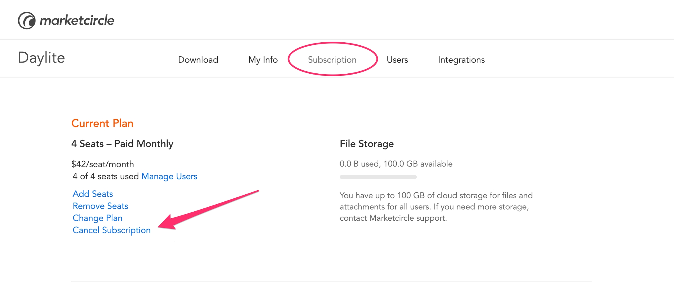 3. Click "Cancel Subscription" under the Current Plan section.