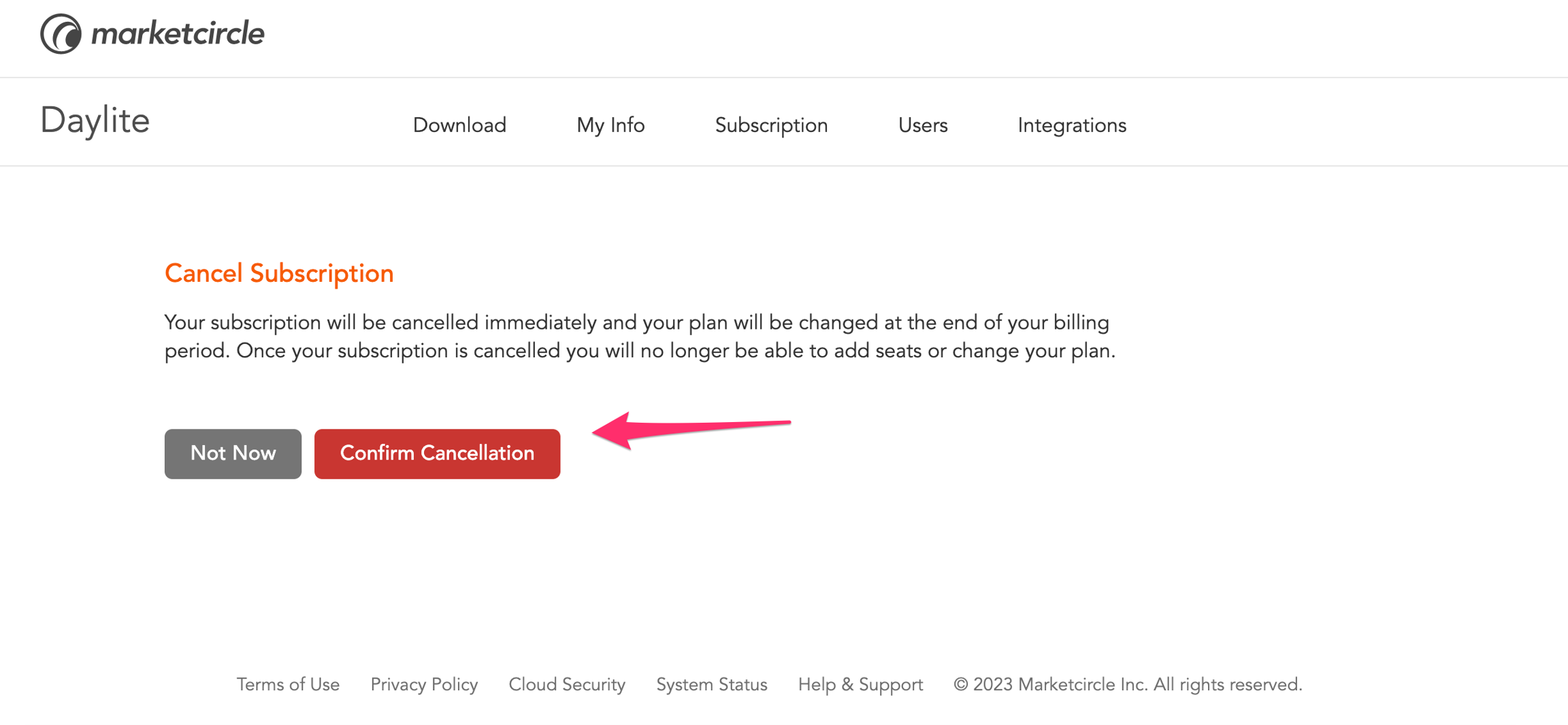 4. Click "Confirm Cancellation"
