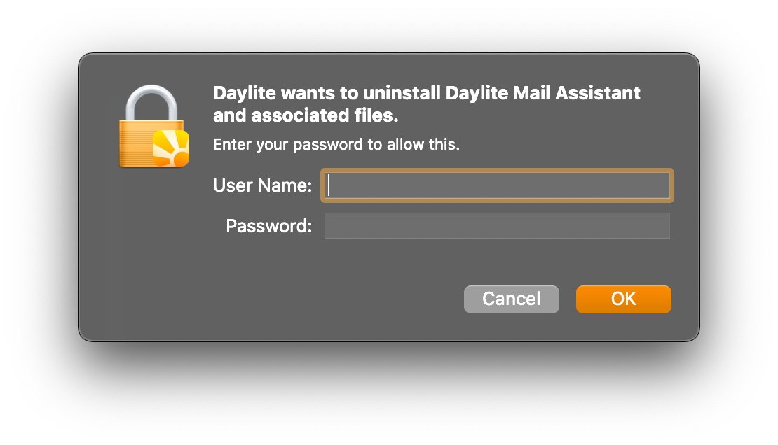 In the window that appears, enter your macOS User Name & Password, then click OK.