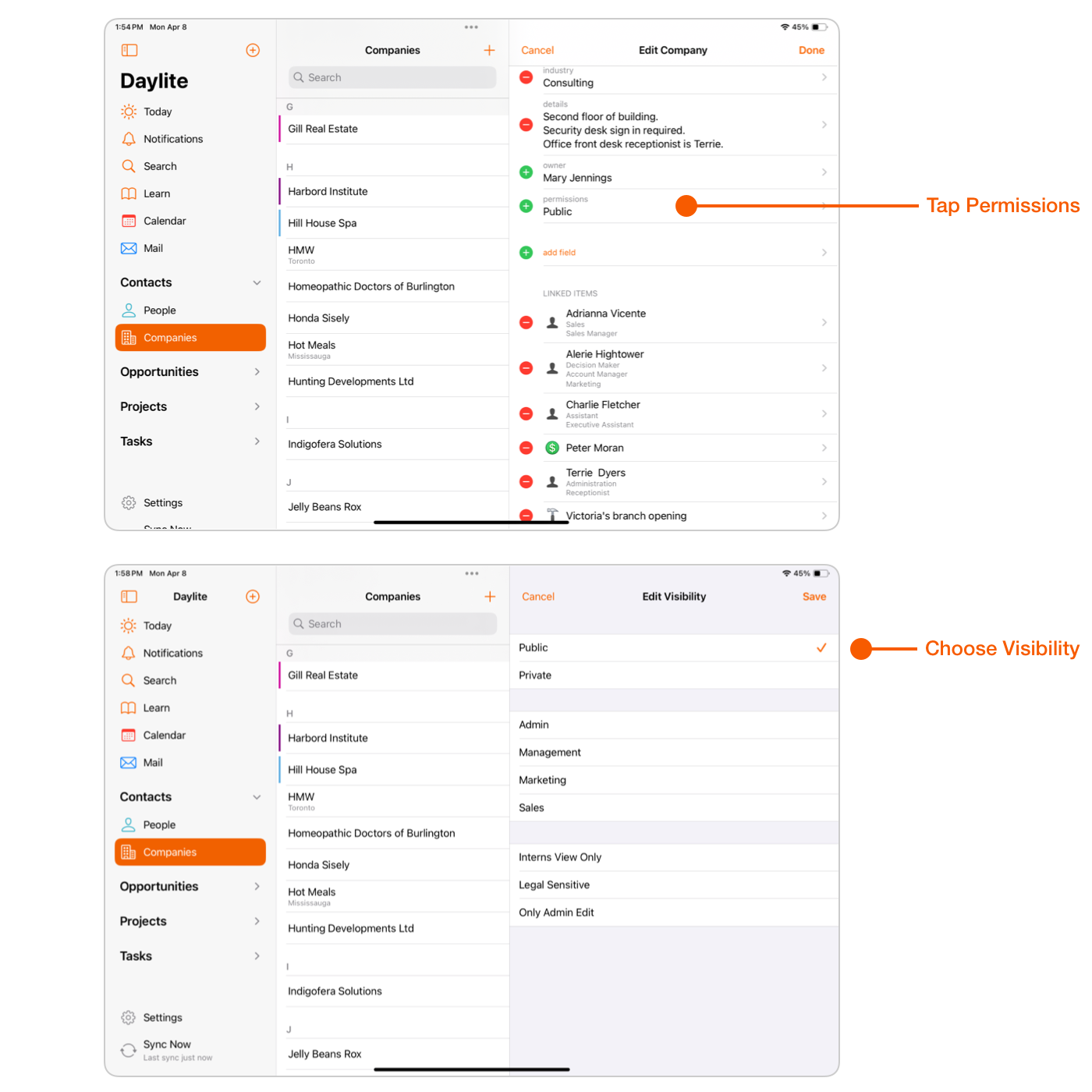 Every business has sensitive information. That's why you can apply permissions to individual items in Daylite.
