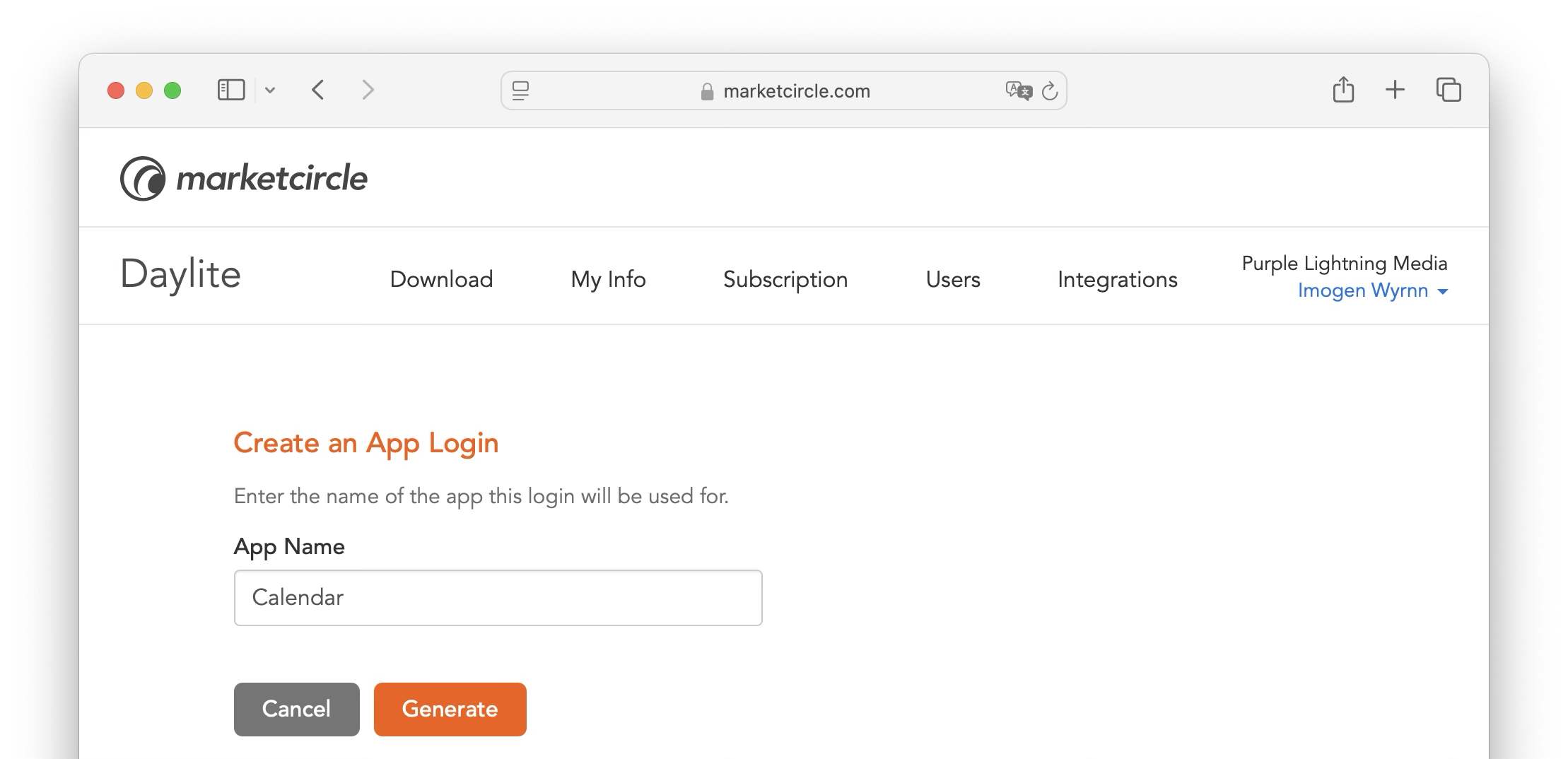 Enter the name of the app or person you’re sharing with, then click Generate.