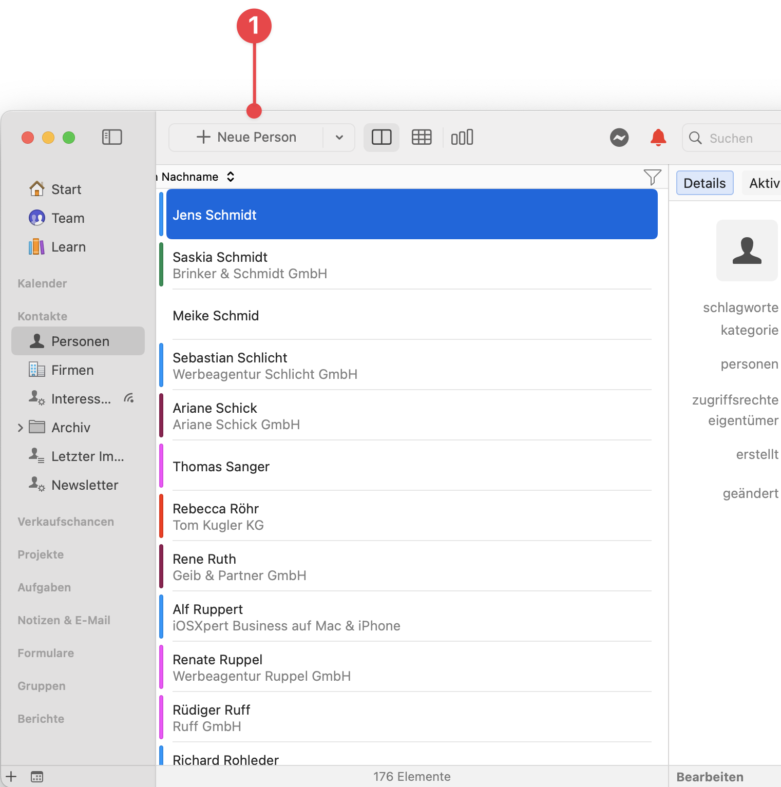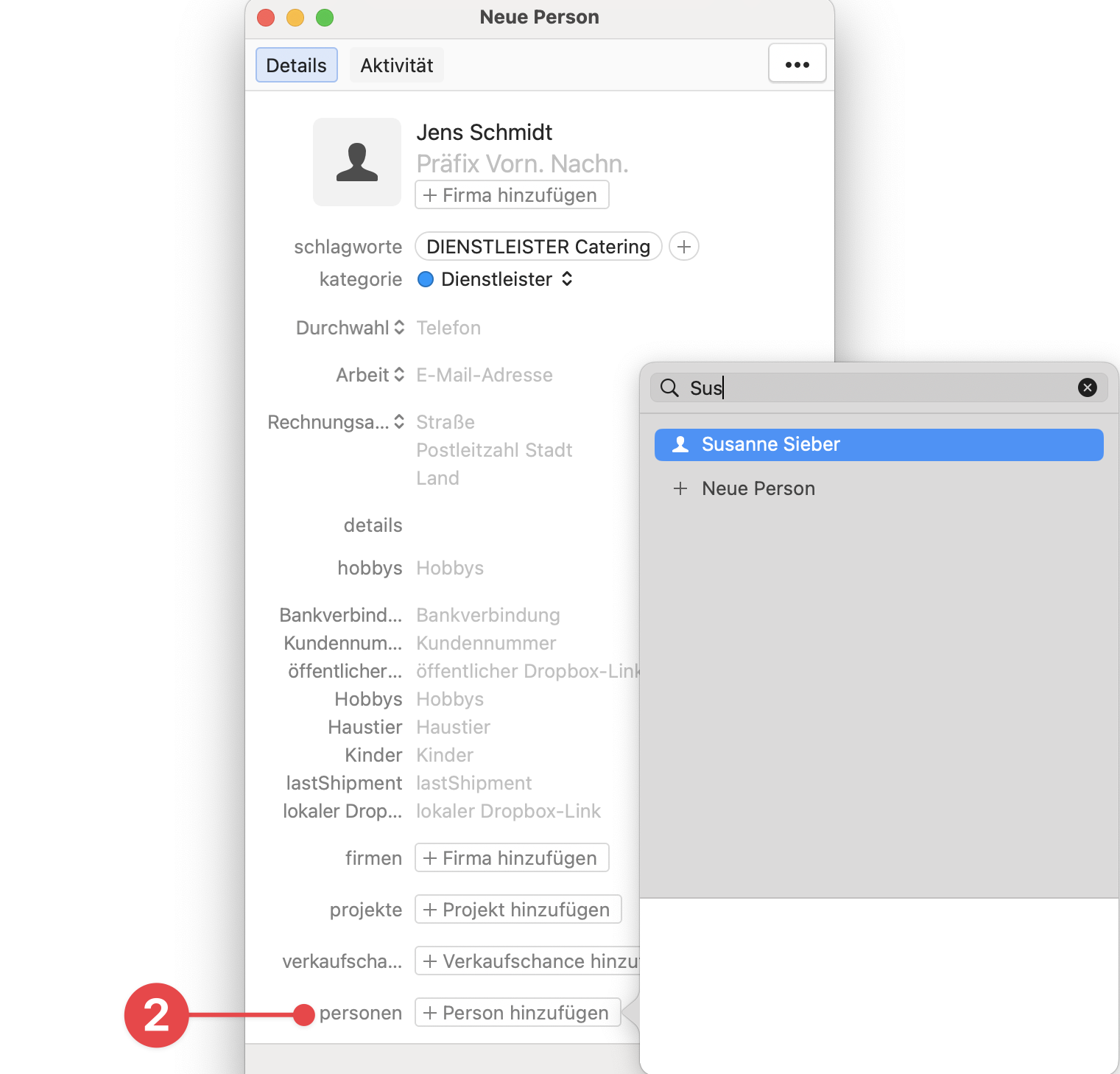 1. Erstellen Sie einen neuen Kontakt für Ihre Empfehlung, indem Sie auf die Schaltfläche **Neue Person** klicken.