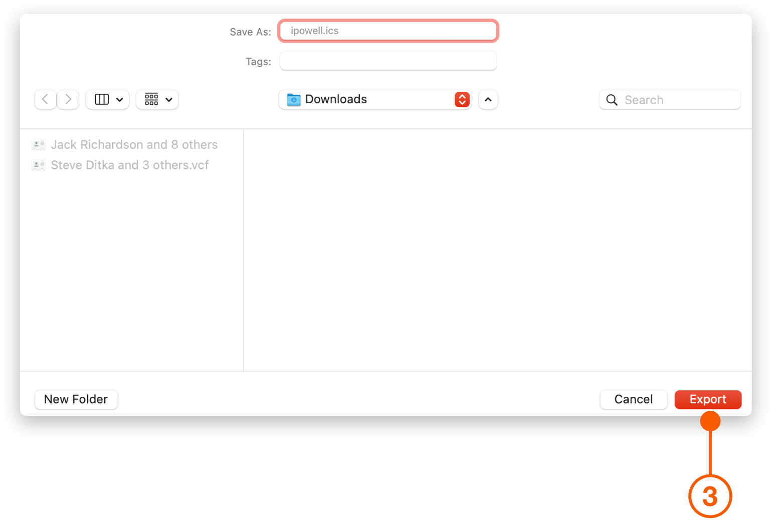 <figure><img src="https://1187866984-files.gitbook.io/~/files/v0/b/gitbook-x-prod.appspot.com/o/spaces%2FQ0gkiAW2bIyNfCIrmDyD%2Fuploads%2Fgit-blob-72832d25693ef7c79dc736a006149bd9f9ef4d24%2FiCal2.png?alt=media" alt="Apple Calendar menu selecting Export"><figcaption></figcaption></figure>