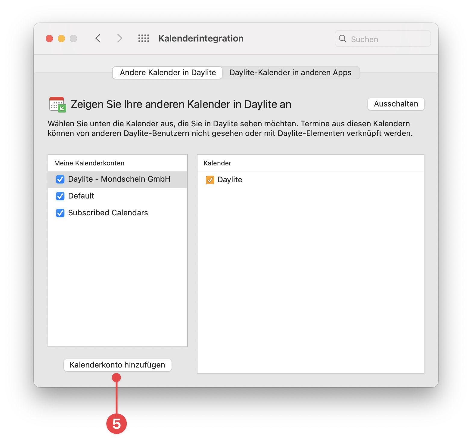 Wie Sie auf dem Screenshot unten sehen können, wurde Daylite erfolgreich zum Apple Kalender hinzugefügt.