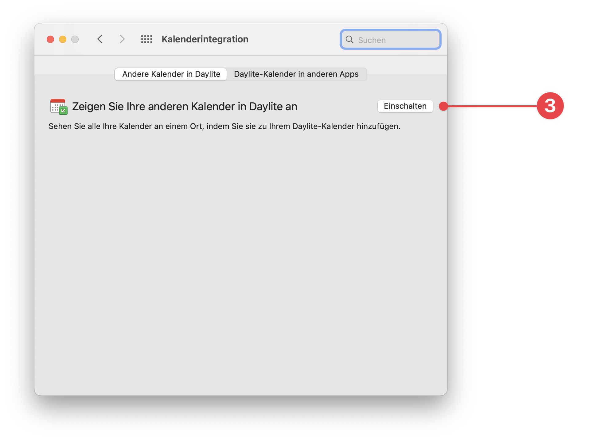 1. Wählen Sie die Registerkarte **Daylite-Kalender in anderen Apps**.