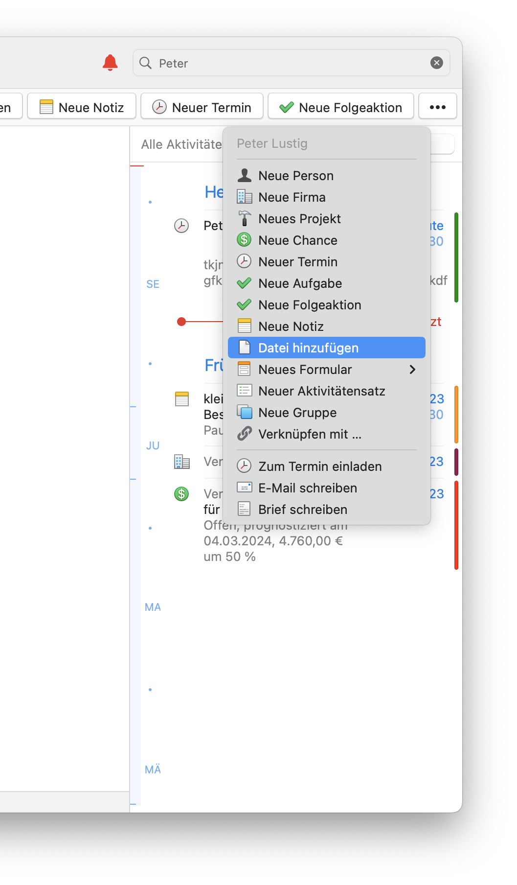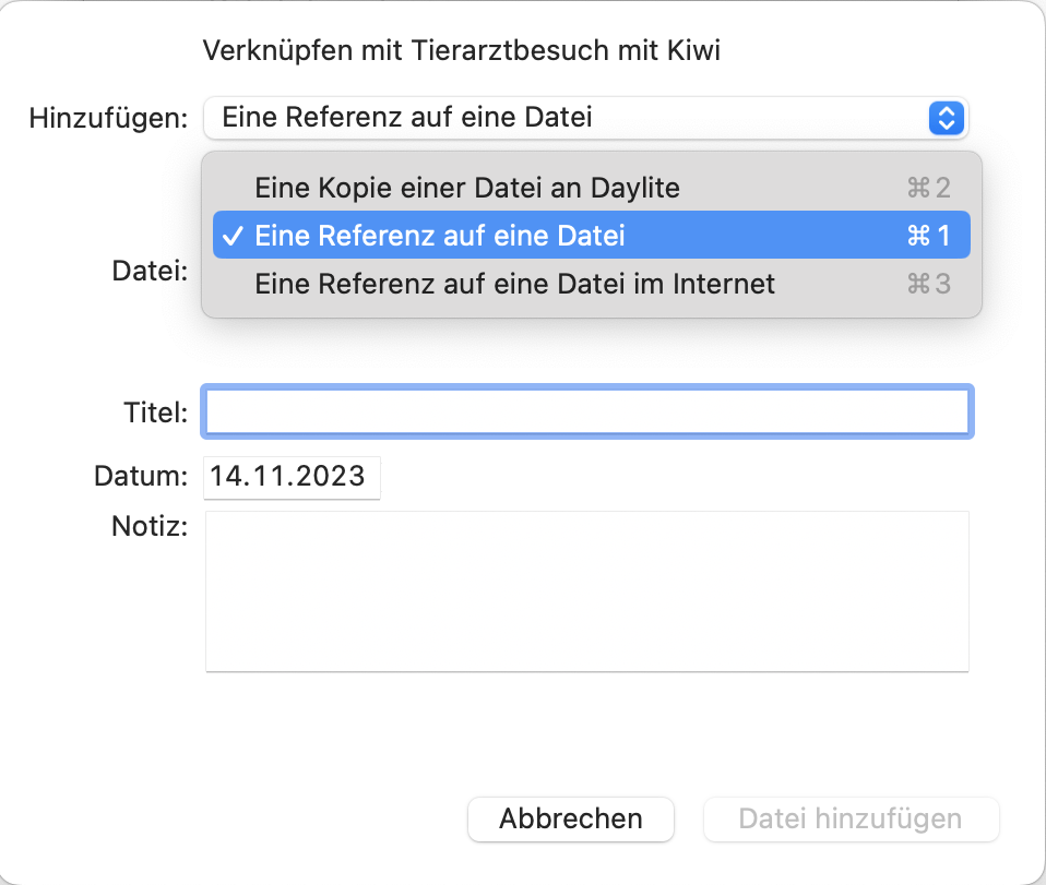 Wählen Sie **Datei hinzufügen** über die Schaltfläche **...** auf der rechten Seite der Daylite-App.