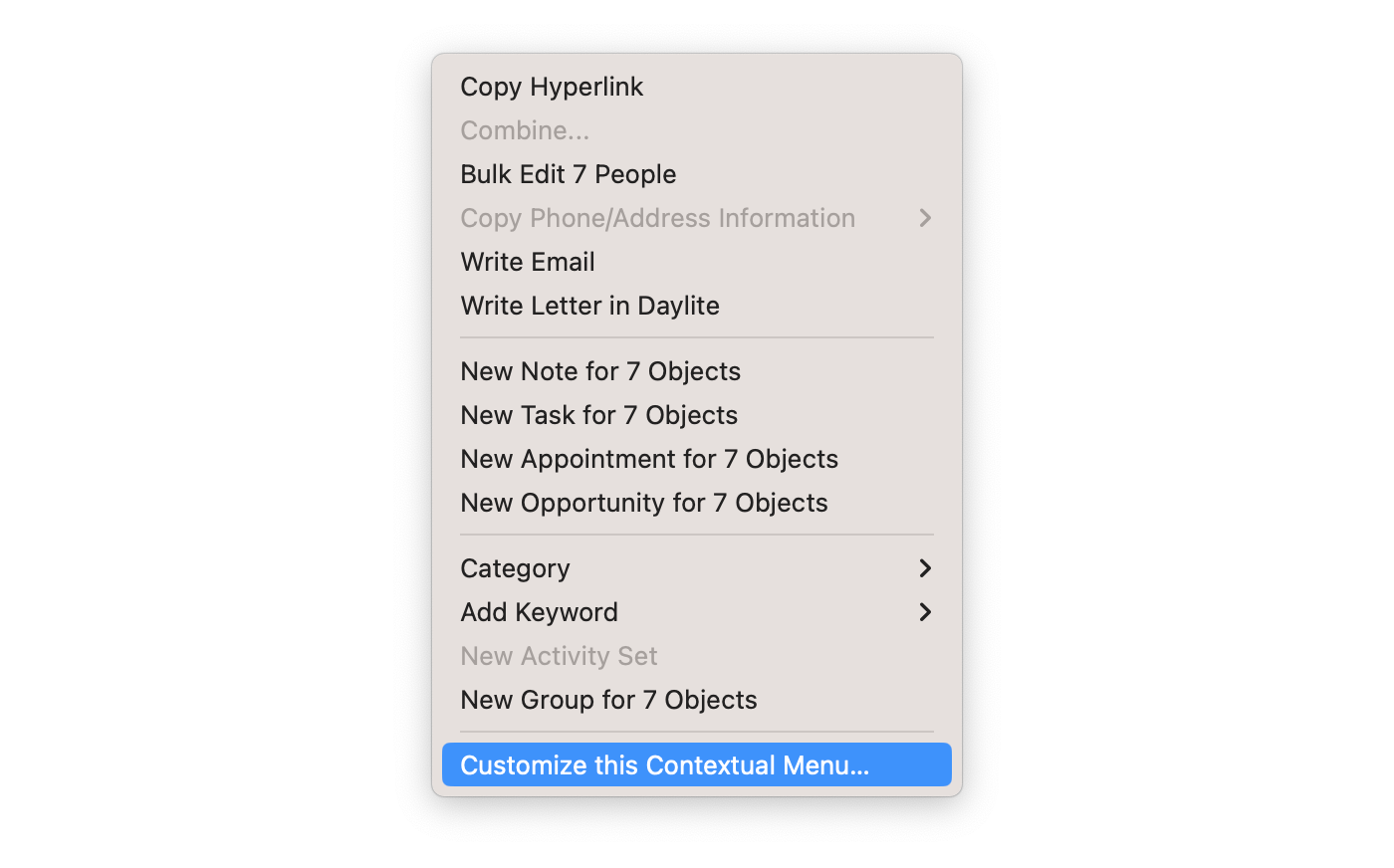 If you do not see New Group listed in this menu, you can add this option by selecting Customize this Contextual Menu.